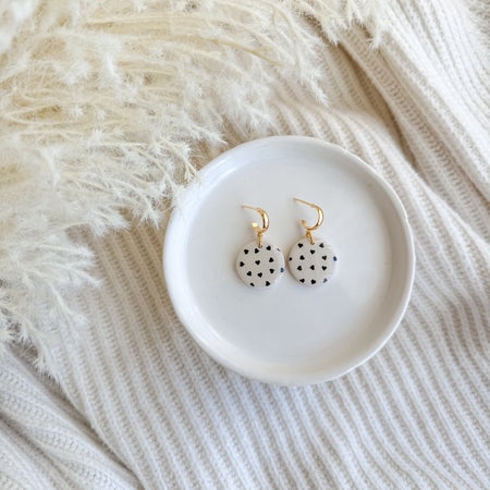 On Sale quick shop Love Struck- Black Hearts | Dangle Earrings- Round Resin Gloss now $14.00 $20.00 30% off