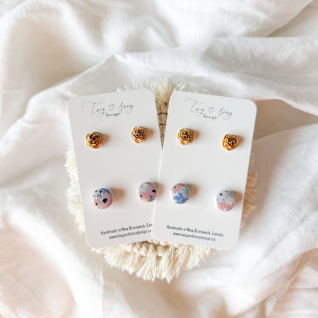 On Sale quick shop Rose Floral Duo| Statement Stud Earrings Set- Resin Gloss now $18.00 $22.00 18% off